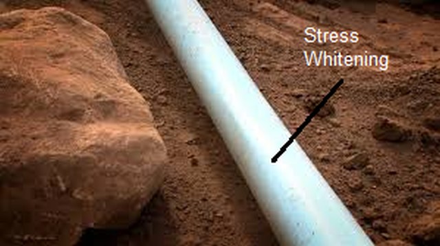 Stress whitening in rigid PVC is typically caused by interfacial failure in second-phase constituents like stabilizers, lubricants, and other processing additives. The extent of stress whitening in uniaxial tension can vary significantly based on the resin formulation and resin itself due to the presence of residue of surfactant and catalyst. In a triaxial stress state, the likelihood of stress whitening increases, and in thick notched specimens, internal crazing may occur after stress whitening. Stress whitening did not start at the notch but instead occurred at a distance from the notch root, specifically at the tip of a shear yielding zone that extended from the notch.